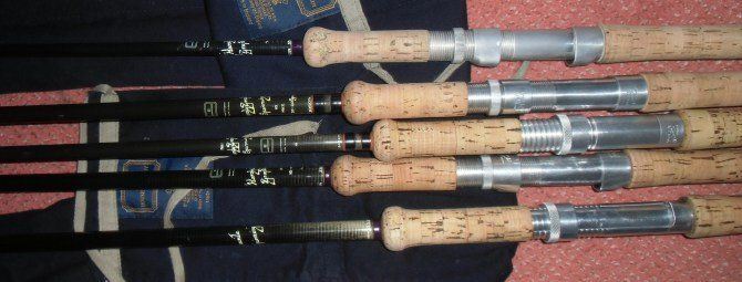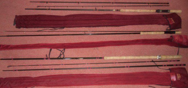 North Western Max Nollert Pelikan Multirange Ruten in 12ft 2 3/4lbs 7+1 Alps Beringung und Rollenhalter, in einem guten Zustand, 3 Stück vorhanden, Stück 230€