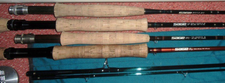 Sage Graphite 4 10151SP, 10 Line, 15,1 ft, 8 3/4 OZ mit Futteral und Sage Transportrohr, sehr stark genraucht, viel Gebrauchspuren im Lack 179€